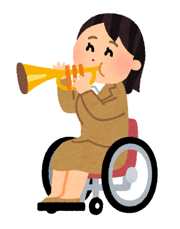 トランペットを演奏する女性のイラスト 車椅子 かわいいフリー素材集 いらすとや